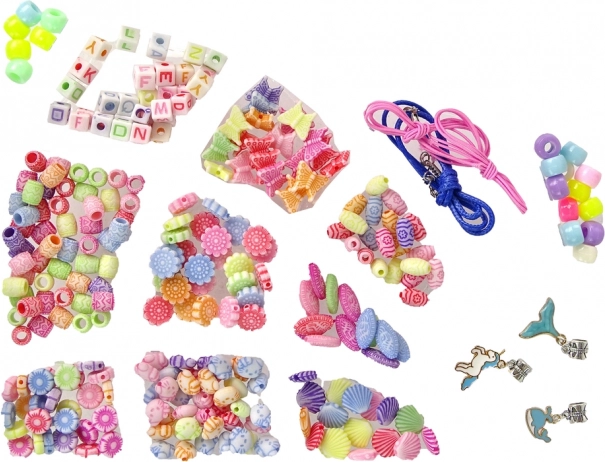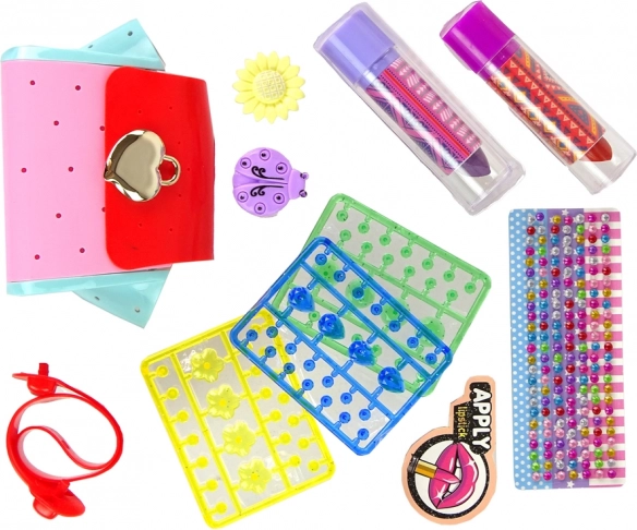 V setu boste našli tudi barvite kristalčke, ki jih lahko uporabite za okrasitev ustvarjalnih projektov, ter dva prisrčna prstana v obliki rože in pikapolonice, ki ne le dodajata sijaj, temveč tudi eleganco. Poleg tega vključuje različne barvne perle različnih oblik, dve rožnati niti, moder trak in tri različne obeske za ustvarjanje personaliziranih zapestnic in ogrlic.