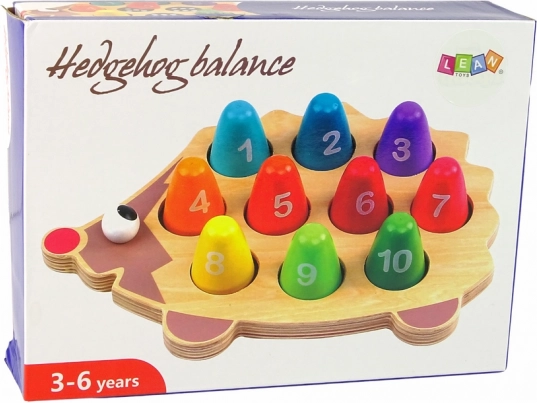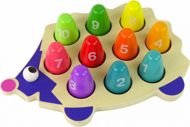 Veseli leseni ježek z 10 oštevilčenimi barvnimi zatiči spremeni učenje v igro. Otroci vadijo štetje, fino motoriko in koordinacijo oko–roka. Kompaktne mere, kakovosten les in certifikata CE/EN71 ga delajo odlično izbiro za otroke od 3 let.