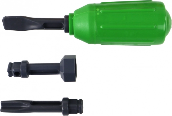 V paketu so izvijač z dvema izmenljivima nastavkoma, paleta s kartonsko škatlo in baterije za zvočne učinke. Otroci tako preizkusijo osnovno montažo in demontažo, vadijo koordinacijo roke in očesa ter izboljšajo tehnično razmišljanje.