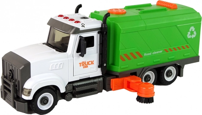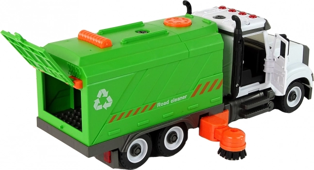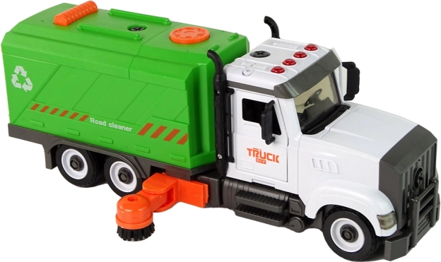 Ta podrobno izdelan čistilni tovornjak v zeleno-beli barvni kombinaciji otrokom ponuja realistično igro čiščenja ulic. Odpiralna sprednja in zadnja vrata, velika stabilna kolesa ter stranske oranžne krtače poskrbijo za pristno izkušnjo. Zahvaljujoč frikcijskemu pogonu je dovolj, da vozilo povlečete in spustite – samo se zapelje.