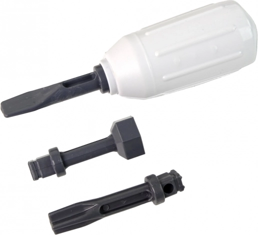 Priložen je izvijač z dvema zamenljivima bitoma. Otroci vadijo fino motoriko, logiko in potrpežljivost pri montaži in demontaži vozila.