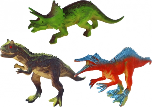 Šest različnih dinozavrov v intenzivnih barvah z učinkujočo površinsko obdelavo spodbuja domišljijo in navduši na prvi pogled.