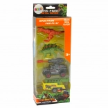 - 2 dinozavra, terensko vozilo z raketometom, prikolica s kletko, originalna embalaža