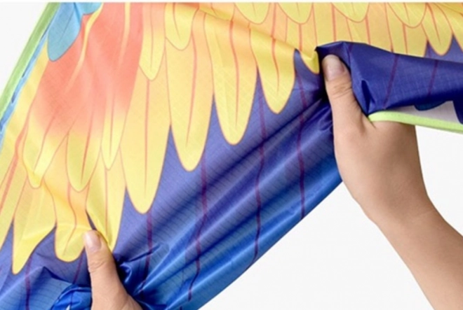Uživajte v vetru z velikim barvitim zmajem v obliki papagaja. Zahvaljujoč dimenzijam 250 × 140 cm, lahkemu in trpežnemu materialu ter enostavnemu upravljanju je idealen za družinsko zabavo na svežem zraku. Priložena je zelena navijalna ročka z dolgo vrvico za stabilen let, natančno upravljanje in očarljiv prizor.