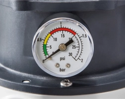 Petpotni ventil, pregleden manometer in vgrajen časovnik za samodejne cikle olajšajo uporabo in varčujejo z energijo.