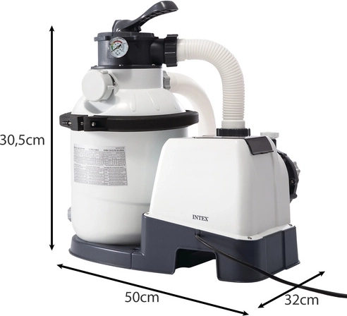 Peščeni filter INTEX je idealna izbira za srednje in velike nadzemne bazene. Visok pretok 5700 l/h in sistem Hydro Aeration bistveno izboljšujeta cirkulacijo in oksigenacijo vode, kar se odraža v njeni prosojnosti in udobju pri kopanju. Odporna konstrukcija rezervoarja proti koroziji, pregleden manometer in vrtljiv prirezni spoj olajšajo namestitev in vzdrževanje.