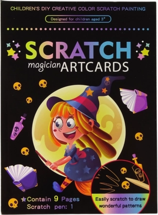 Odkrijte ustvarjalno zabavo z strgalnimi pobarvankami za otroke z motivi čarovnic. Dovolj je, da postrgate črno plast z lesenim pisalom in razkrijete barvite ilustracije. Odlično za razvoj domišljije in fine motorike, praktične dimenzije za otroške roke in varna izdelava z certifikatom CE.