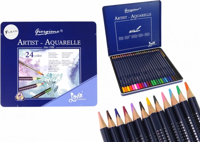 Set 24 akvarelnih barvic v kovinskem etuiju s preprosto uporabo in intenzivnimi barvami za umetnike vseh starosti.