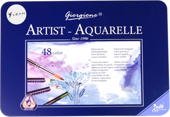 Komplet 48 akvarelnih barvic v elegantnem kovinskem etuiju ponuja intenzivne barve in enostavno raztapljanje z vodo. Barvice dolžine 17 cm uporabljate kot običajne barvice, nato z mokrim čopičem ustvarite prepričljiv akvarelni učinek. Kompaktno pakiranje je idealno za na pot in v šolo.