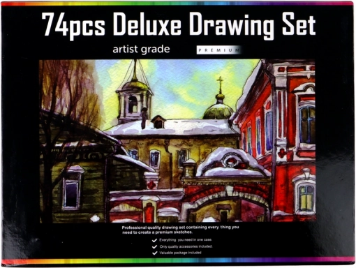 Ta vsestranski risarski komplet v kompaktni škatli z magnetnim zapiranjem ponuja 72 barvic z bogato izbiro odtenkov – od nežnih pastelov do izrazitih, intenzivnih barv. Vsaka barvica ima svoje mesto, zato je vse pregledno organizirano in pripravljeno za ustvarjanje doma ali na poti.