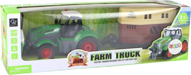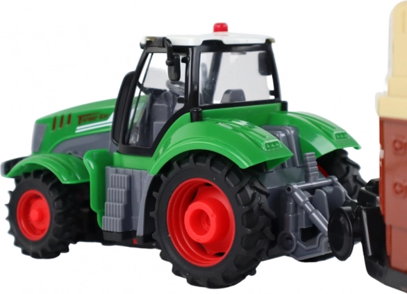 Doživite kmečke dogodivščine z daljinsko vodenim traktorjem v merilu 1:24. Realistična izvedba v zeleni barvi, zastekljena kabina in odstranljiva prikolica za prevoz živali ustvarjajo odlično sceno za domišljijsko igro. Traktor je opremljen z LED lučmi v kabini za še pristnejšo izkušnjo.