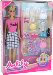 Punčka ANLILY prihaja v modni obleki in z dodatki, s katerimi lahko otroci ustvarjajo svoje trende. S pripomočki za make-up in urejanje las zlahka pripravijo izviren videz ter ga dopolnijo z eno izmed 5 torbic glede na razpoloženje ali priložnost.