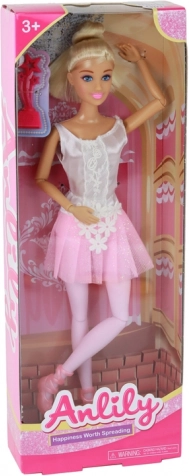 Odkrijte čar baleta s punčko ANLILY, ki z nežnim videzom in premišljenimi detajli navdihuje k uram domiselne igre. Bel življenik z nežnim tilom se ujema z razširjenim rožnatim krilom s bleščicami, medtem ko baletne hlačne nogavice in copatki dopolnijo vtis prave plesalke.