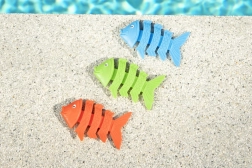 Komplet zabavnih potapljaških ribic vam omogoča spremeniti vsako kopanje v avanturo. Tri barvite ribice (oranžna, zelena in modra) so zasnovane tako, da se potopijo na dno in spodbudijo otroke k potapljanju. Igranje pomaga razvijati usklajevanje gibov in izboljševati plavalne veščine.