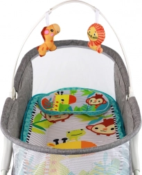 Gugalnica deluje na baterije (2 x 1,5 V, niso priložene) in ponuja različne možnosti zabave, kot so pesmi in vibracije, ki pomagajo otroku pri sprostitvi in uspavanju.
