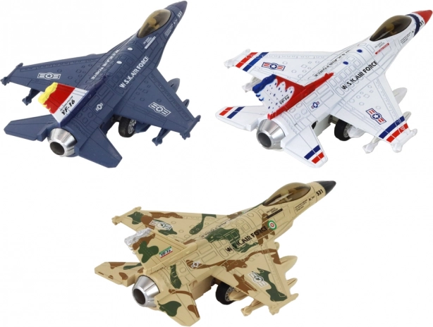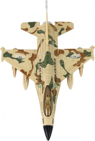Ta model vojaškega lovskega letala ponuja popolnoma realistične učinke zahvaljujoč svetlobnim in zvočnim funkcijam. Vsak model je opremljen z mehanizmom, ki omogoča hitro napenjanje in premikanje po površini, kar zagotavlja dinamično igro.