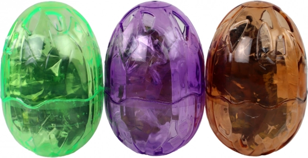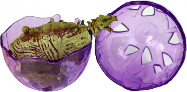 Prozorno plastično jajce dimenzij 9 × 6 × 6 cm skriva realistično figurico dinozavra, ki jo otrok vidi še pred odpiranjem. Jajce se zlahka odpre in služi tudi kot praktična škatlica za shranjevanje igrače – odlično za na pot in v otroške sobice.