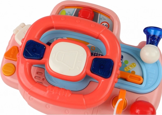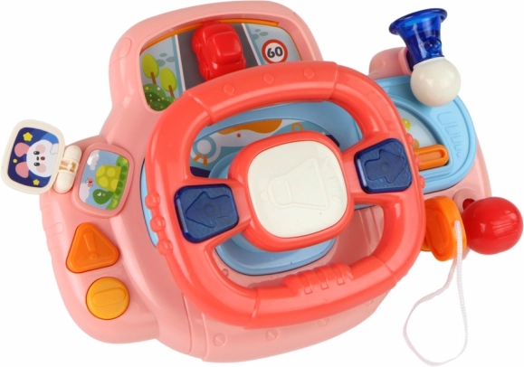 Interaktivni volan v rožnati barvi je igrača, ki otrokom ponuja ne le zabavo, temveč tudi interaktivno učenje ter razvoj motorične koordinacije in čutnih veščin.