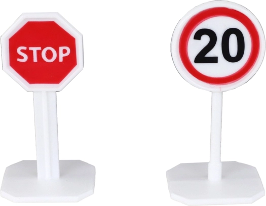 Komplet vključuje tudi nabor prometnih znakov, ki pomagajo ustvarjati trase in označevati pomembne točke na poti. To je idealna priložnost za učenje osnov pravil cestnega prometa na zabaven način.