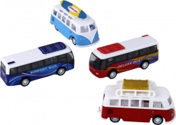 V paketu najdete 2 avtodoma (rdeč in moder) ter 2 avtobusa (moder »Airport Bus« in rdeč »Deluxe Bus«), dopolnjena s prometnimi znaki. Trpežna izdelava in realistične podrobnosti (okna, sedeži, strešni nosilec ali deska za surfanje) naredita komplet za popolno darilo za male ljubitelje vozil.