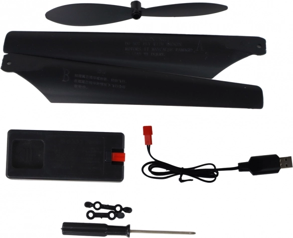 Komplet vključuje daljinski upravljalnik, na katerega je pritrjeno zložljivo stojalo za telefon. Po namestitvi posebne aplikacije v telefon lahko na zaslonu telefona spremljate pogled kamere in upravljate helikopter.