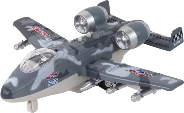 Vojaško lovsko letalo Camo je čudovita igrača, ki bo navdušila vsakega malega raziskovalca. S pomočjo svetlobnih in zvočnih efektov dodaja igri na avtentičnosti in spodbuja razvoj motoričnih sposobnosti. Na primer, med hitrim gibanjem omogoča otrokom simulirati različne scenarije in akcije povezane z vojaškimi letali. Na voljo je v treh barvnih različicah: modro-siva, siva in bež-rjava. Igrača je namenjena otrokom od 3. leta dalje in izpolnjuje certifikat CE ter standard EN71.