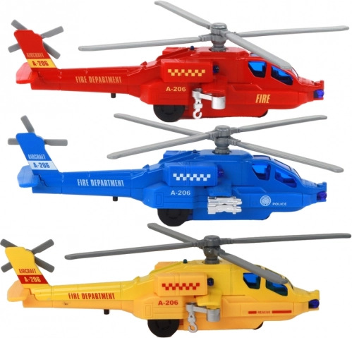 Igrača je narejena iz aluminijastega materiala, kar ji daje ne le trdno strukturo, ampak tudi videz podoben pravim reševalnim helikopterjem. Vsak model ima vgrajen pogon, ki po navijanju poskrbi, da se začne premikati in rotorji se vrtijo, kar povečuje realizem in zabavo.
