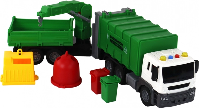 Dodatna zanimivost je prikolica z žerjavom. Roka žerjava se dviga, kar v igro vnaša element interakcije in ustvarjalnosti. Otrok lahko dviga in spušča zabojnike ter odigra prizore zbiranja in ločevanja odpadkov.