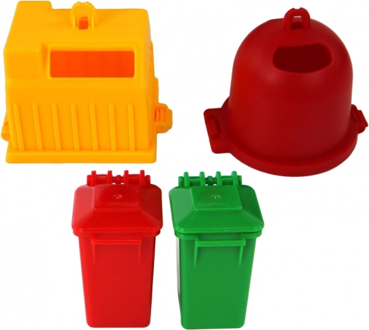 V kompletu boste našli 2 zabojnika za odpadke, 2 koša za smeti in 4 slikovne ploščice, ki prikazujejo različne vrste odpadkov. Otroci se tako na zabaven in dostopen način seznanijo z načeli ločevanja odpadkov.