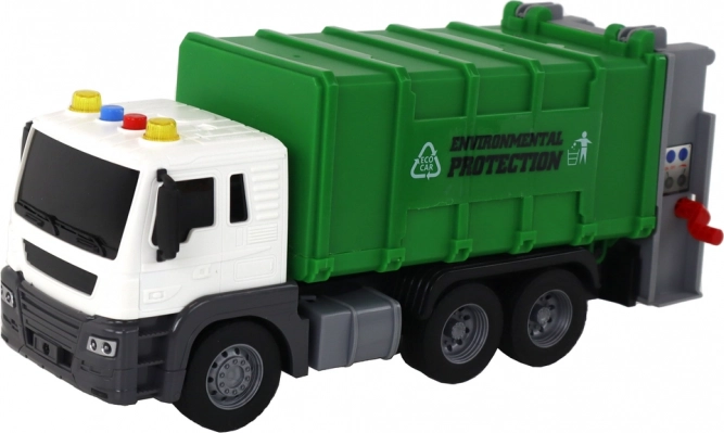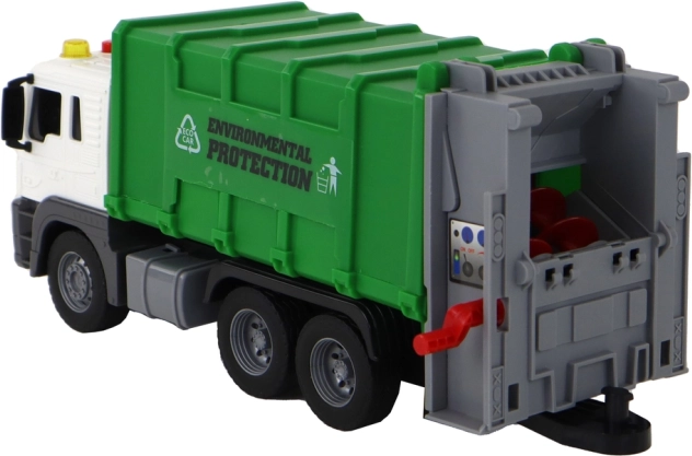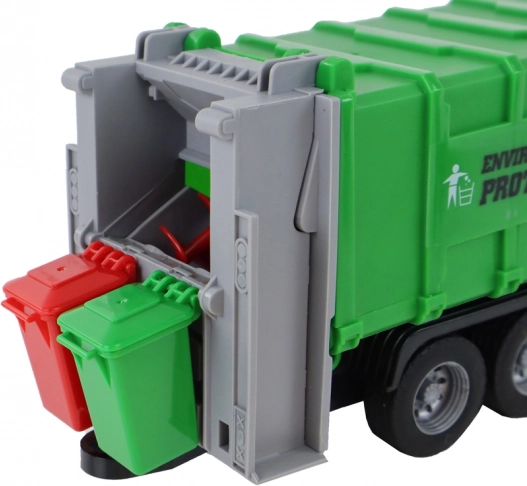 Tovornjak za smeti z žerjavom s trenjskim pogonom zelen, merilo 1:16