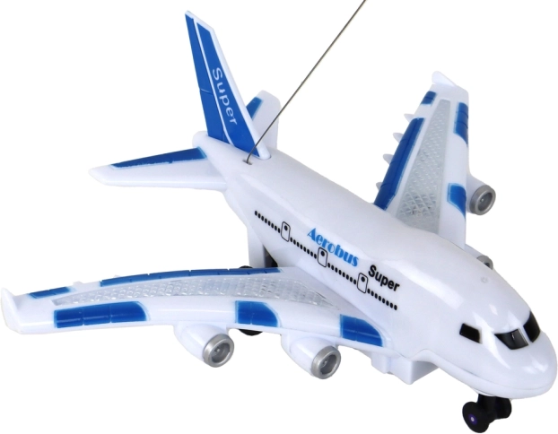 RC model letala 'Aerobus' je odlična izbira za male ljubitelje letalstva. Elegantna bela karoserija z modrimi detajli ponuja poleg stilskega videza tudi realistične izkušnje. Otroci bodo uživali v svetlobnih učinkih na krilih, ki popestrijo vsako igro, in zvestih zvokih, ki okrepijo občutek pravega leta.
