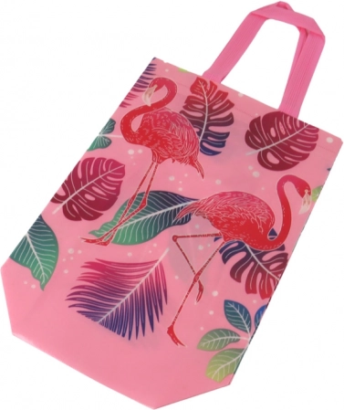 Slogovna rožnata darilna vrečka z motivom flamingov bo vašemu darilu dodala eleganco in tropski čar. Izdelana je iz odpornega materiala, ki zanesljivo ščiti vsebino, univerzalen dizajn pa je primeren za rojstne dni, praznike in druge priložnosti. Poleg tega je večkrat uporabna.