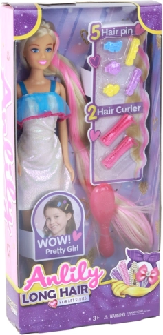 Potopite se v svet mode in ustvarjalnosti s punčko Anlily, ki zagotavlja nepozabno zabavo. Ta elegantna punčka ima dolge blond lase s barvnimi poudarki, kar omogoča ustvarjanje raznolikih pričesk in eksperimentiranje s stilom.