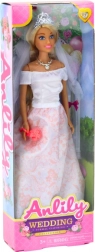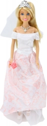 Predstavljamo vam čudovito poročno lutko, ki bo razveselila vsako otroško igro. Oblečena v dolgo belo obleko s svetlo roza detajli prinaša eleganco in šarm. Lutka drži šopek, ki se popolnoma ujema z njenim sofisticiranim videzom.