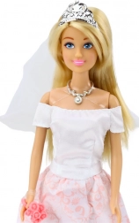 Elegantna tiara in ogrlica skupaj s šopkom dajeta lutki plemenit videz, idealen za vlogo neveste.