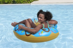 Uživajte v poletju z izvirnim plavalnim obročem v obliki okusnega krofa z modro »glazuro« in barvitimi posipkami. Obroč je odličen za počitek, varno poležavanje na gladini in prve korake pri učenju plavanja. Zaradi velike notranje odprtine udobno podpira telo in omogoča prijetno driftanje.