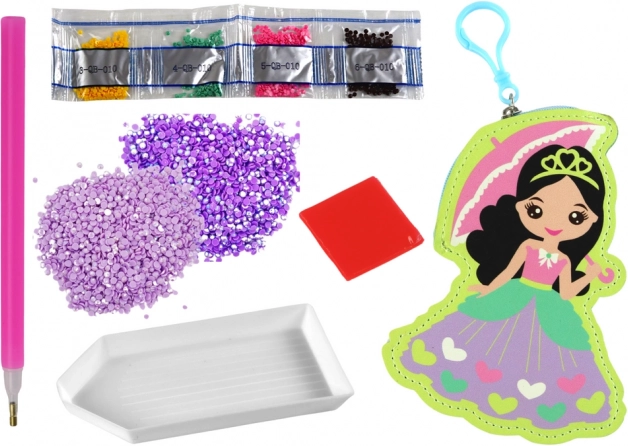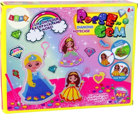 Kreativni komplet za male umetnike prinaša zabavo in razvoj spretnosti: ustvarite si obesek v obliki princese z uporabo tehnike diamantnega ustvarjanja. Paket vsebuje 6 barv kamenčkov, aplikator in pladenj za enostavno delo. Idealno za otroke od 6 let, z certifikatom CE in standardom EN71.