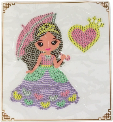 Kreativni komplet za diamantno ustvarjanje – obesek princesa. 6 barv kamenčkov, pero in pladenj. Certifikat CE, EN71. Idealno za otroke od 6 let.