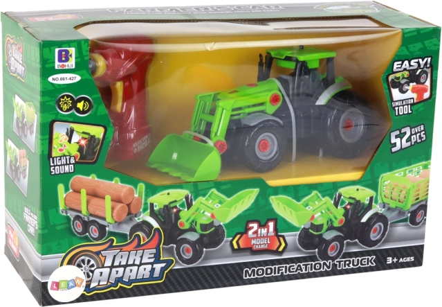 Zabaven in izobraževalen komplet za male mojstre: traktor s prikolico, ki si ga lahko otroci sami sestavijo in razstavijo. Priložen je tudi otroški vrtalnik/izvijač. Igrača ponuja realistične zvoke motorja in svetlobne učinke, razvija fino motoriko, ustvarjalnost in logično razmišljanje.