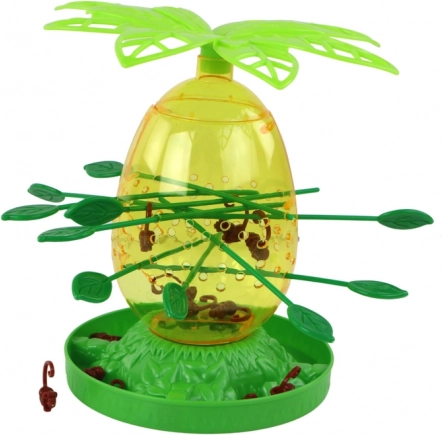 Sestavite prozorno deblo, prebodite zelene »vejice«, stresite opice in zaprite krošnjo. Igralci se izmenjujejo in previdno vlečejo palčke. Vsaka opica, ki pade, se šteje. Zmaga tisti, ki mu pade najmanj opic.