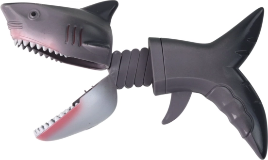 Zabavna grizalna igrača v obliki morskega psa na vzmeti prinaša otrokom veliko smeha in akcije. Ob pritisku na sprožilec se čeljust hitro zapre in posnema plenilca. Igrača podpira fino motoriko, razvija domišljijo in je zaradi čvrste konstrukcije vzdržljiva za dolgotrajno igro. Primerna za otroke od 3 let.