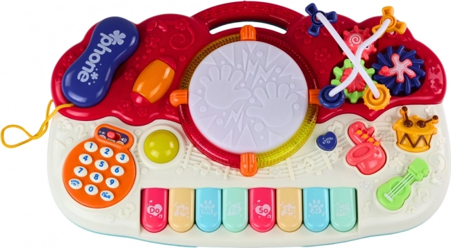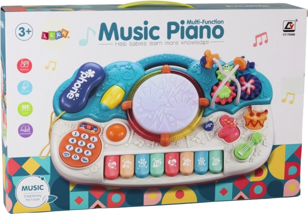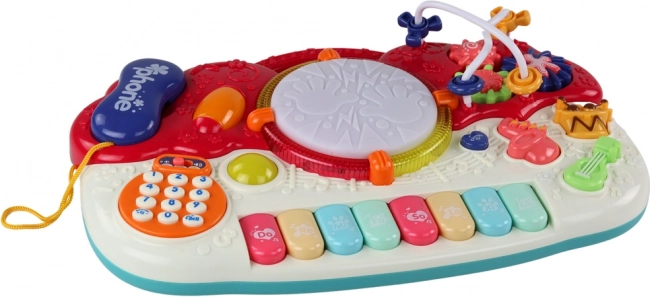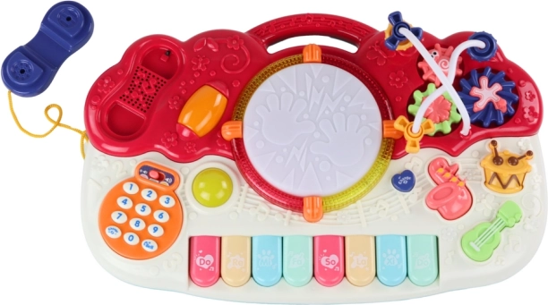 Vsebuje tipkovnico, boben, vgrajen telefon in druge različne zvočne ter svetlobne funkcije za razvoj otrokovega glasbenega zavedanja.
