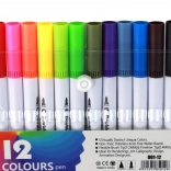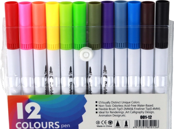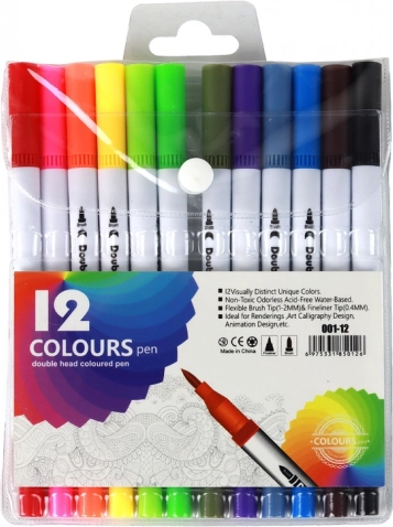 Set vsebuje 12 dvostranskih flomastrov, ki omogočajo izražanje ustvarjalnosti na najbolj barvit način. Ne glede na to, ali ste profesionalni umetnik ali začetnik, bodo naši flomastri izpolnili vaša pričakovanja glede kakovosti in raznolikosti.