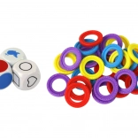 Štiri kompleti po 7 obročkov za več igralcev in 3 kocke, ki ustvarjajo naključne vzorce. Vsak krog je drugačen, igra je dinamična in napeta.