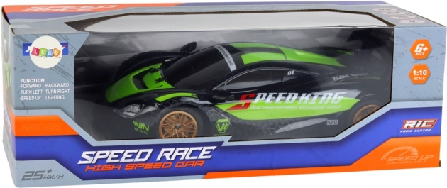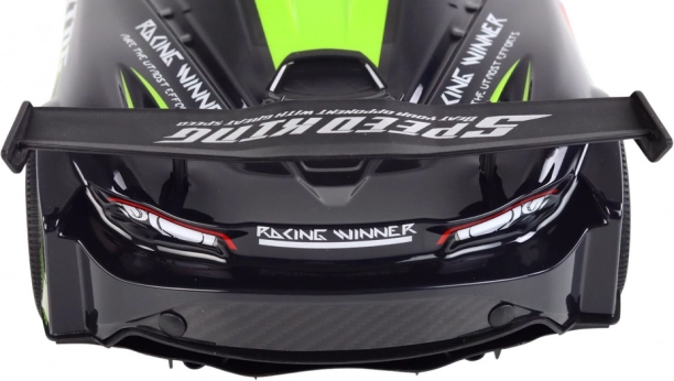 Uživajte v adrenalinu s tem RC športnim avtom v merilu 1:10 v zeleno‑črnem dizajnu z zlatimi platišči. Ponuja hitrost do približno 25 km/h, gladko upravljanje na 2,4 GHz, svetlobne učinke in napajanje z 7,4 V akumulatorjem. Odličen za zabavo na prostem in doma za otroke od 6 let naprej.