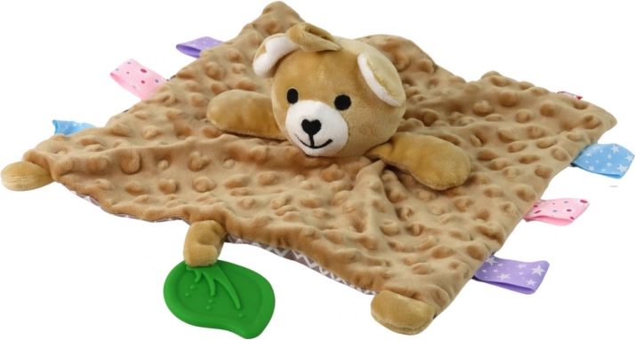 Predstavljamo plišasto odejico z medvedkom, ki združuje mehkobo in funkcionalnost, da razveseli in pomiri vašega malčka. Vsebuje grizalo in barvite trakove za senzorično stimulacijo.