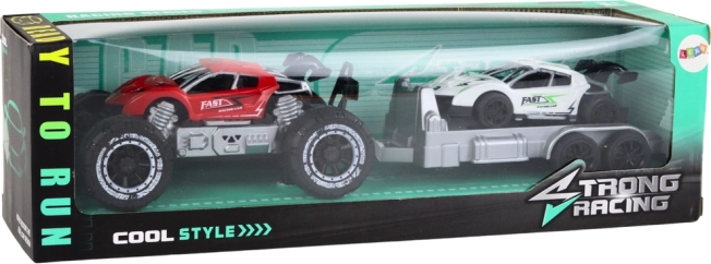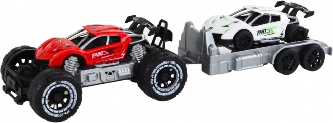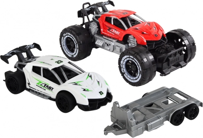 Za avtom je priklopljena prikolica, na kateri je manjši bel športni avtomobil, pripravljen na nove izzive. Kar pa ta komplet resnično naredi izjemen, je njegova izjemna funkcionalnost. Prikolico je mogoče kadarkoli odklopiti od rdečega avtomobila, kar vam daje možnost ustvarjati še bolj zapletene zgodbe in razvijati domišljijo vašega otroka.