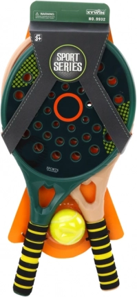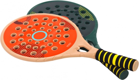 .Set 2 padel loparjev za športno igro padel v elegantni zeleni in krem barvi. Loparji so izdelani iz visokokakovostne plastike, so trdni in robustni. Namesto mrežice (kot pri tradicionalnem teniškem loparju) je plastika z odprtinami.
