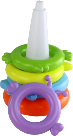 Otroci zlagajo obroče od največjega do najmanjšega, s čimer naravno razvijajo logično razmišljanje, prepoznavanje barv in razvrščanje. Enorožec na vrhu igri doda čaroben pridih.