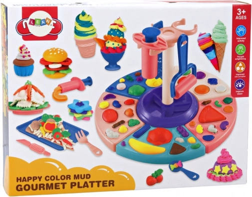 Ta bogato opremljen modelirni set je idealen za vse male ljubitelje kuhanja in ustvarjanja. Zahvaljujoč 10 živim barvam plastelina lahko otroci kombinirajo, mešajo in oblikujejo slastno videti dobrote – od sladolednih kup do mini pic.